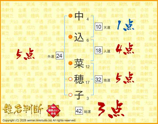 中込菜穂子さんの総運は42画の3点!