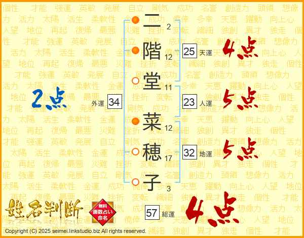 二(2画)階(12画)堂(11画) 菜(12画)穂(17画)子(3画)