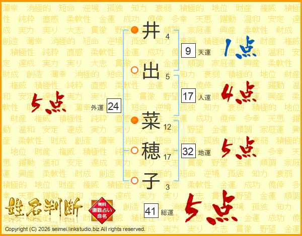 井出菜穂子さんの総運は41画の5点!