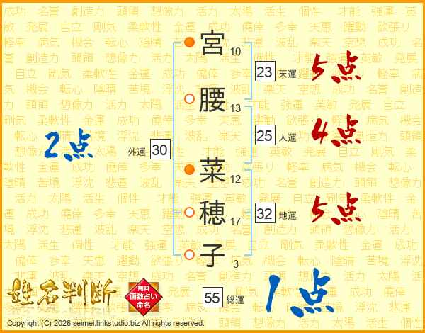 宮腰菜穂子さんの総運は55画の1点!
