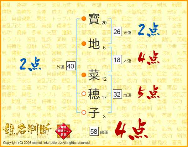 寳地菜穂子さんの総運は58画の4点!