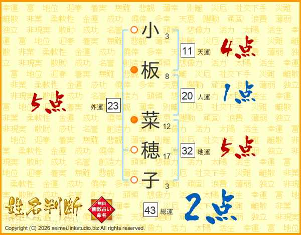 小板菜穂子さんの総運は43画の2点!