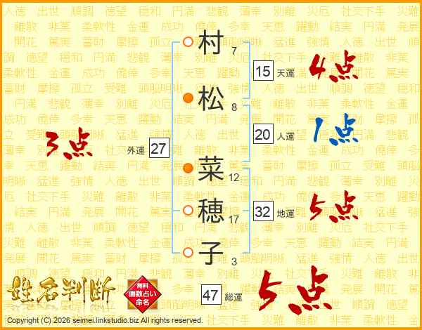 村松菜穂子さんの総運は47画の5点!