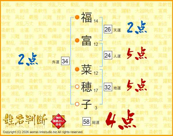 福富菜穂子さんの総運は58画の4点!