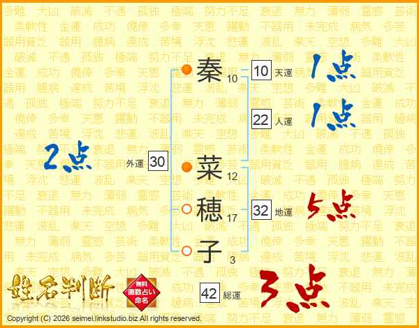 秦菜穂子さんの地運は32画の5点!