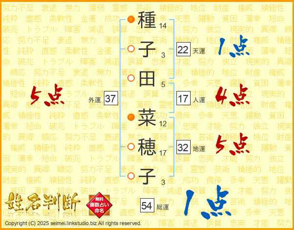 種子田菜穂子さんの外運は37画の5点!