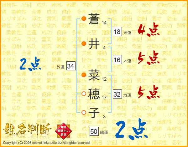 蒼井菜穂子さんの外運は34画の2点!