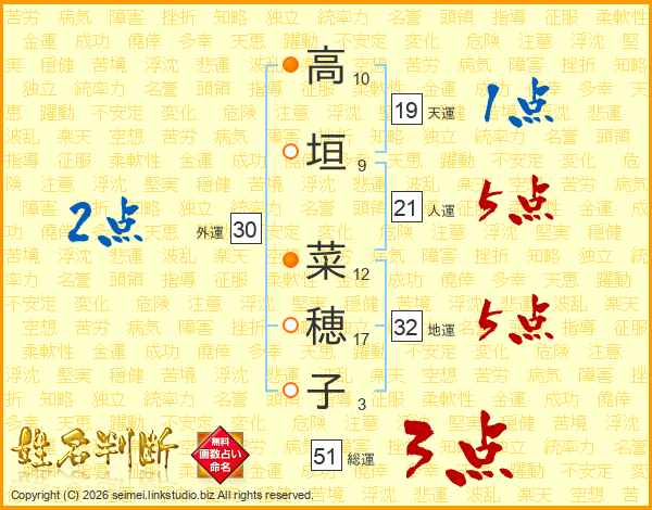 高垣菜穂子さんの総運は51画の3点!