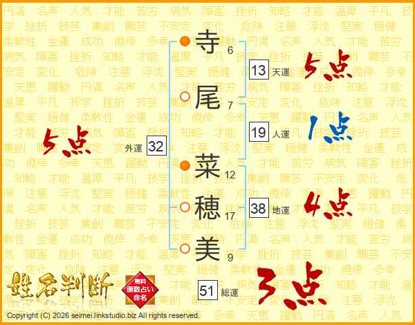 寺尾菜穂美さんの外運は32画の5点!