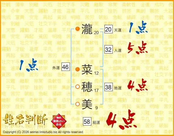 瀧菜穂美さんの総運は58画の4点!