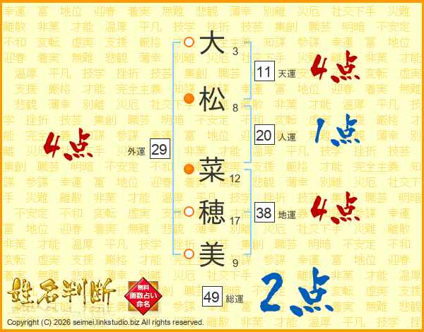 大松菜穂美さんの総運は49画の2点!