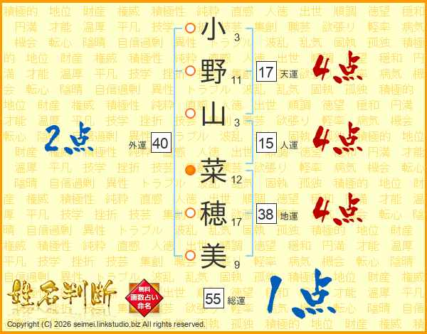 小野山菜穂美さんの天運は17画の4点!