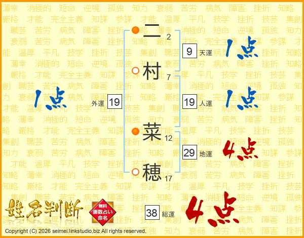 二村菜穂さんの総運は38画の4点!
