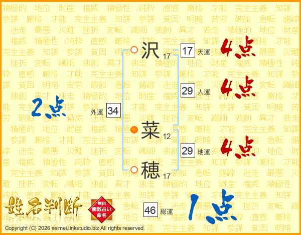 沢(17画) 菜(12画)穂(17画)