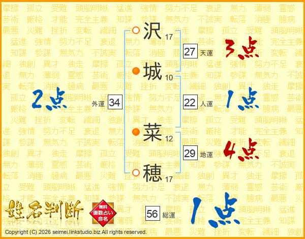 沢(17画)城(10画) 菜(12画)穂(17画)