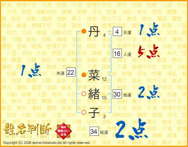 丹菜緒子さんの総運は34画の2点!