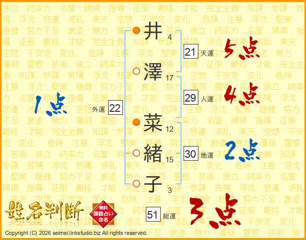 井澤菜緒子さんの総運は51画の3点!