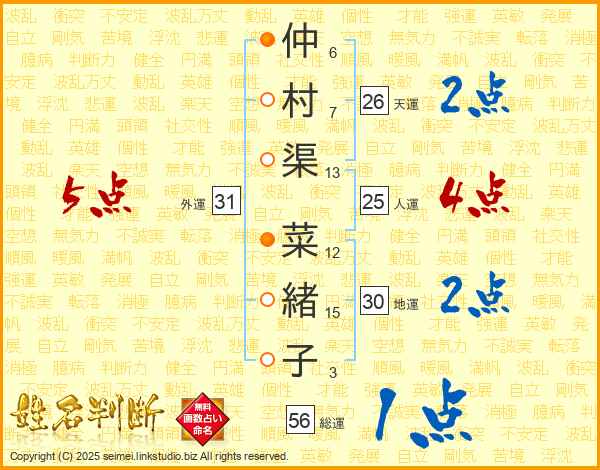 仲村渠菜緒子さんの総運は56画の1点!