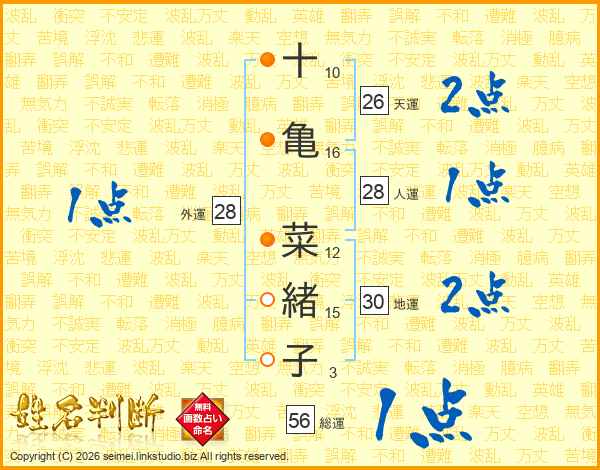 十亀菜緒子さんの天運は26画の2点!