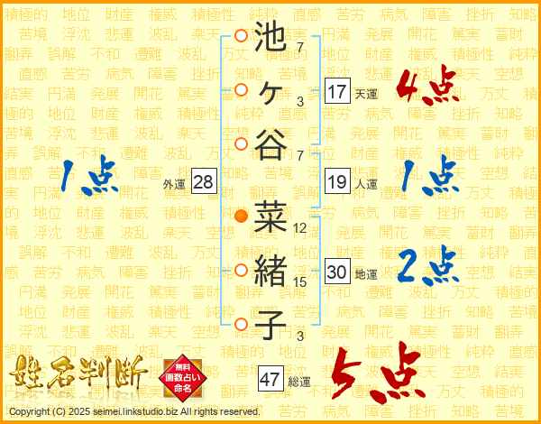 池ヶ谷菜緒子さんの総運は47画の5点!