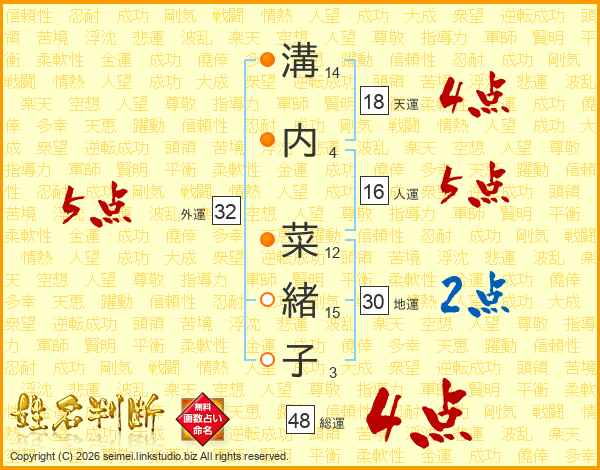 溝内菜緒子さんの総運は48画の4点!