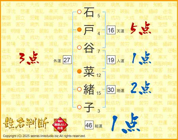 石戸谷菜緒子さんの総運は46画の1点!