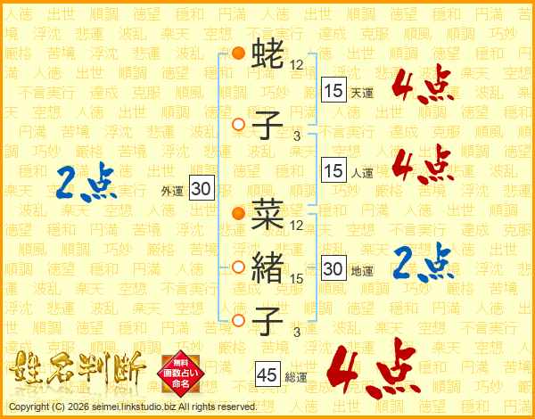 蛯子菜緒子さんの総運は45画の4点!