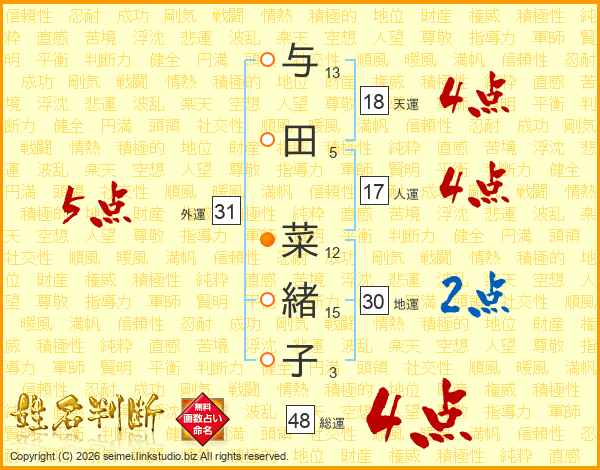 与田菜緒子さんの総運は48画の4点!