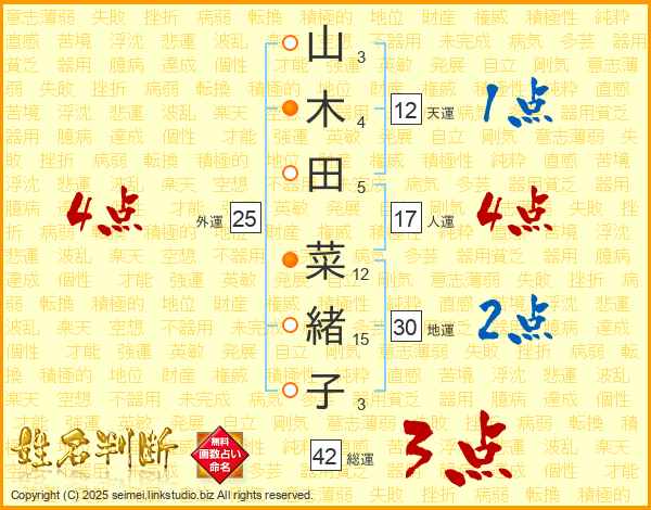 山木田菜緒子さんの地運は30画の2点!