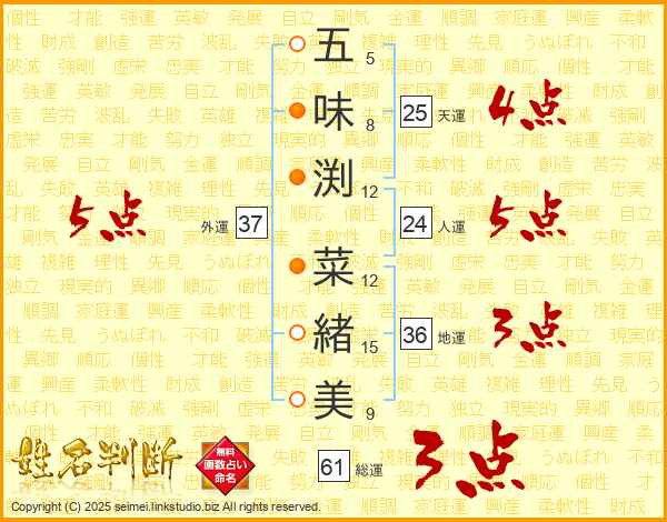 五味渕菜緒美さんの総運は61画の3点!