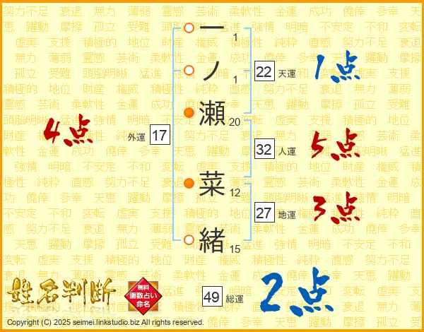 一ノ瀬菜緒さんの外運は17画の4点!
