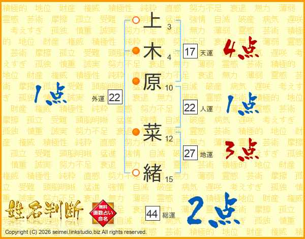上木原菜緒さんの天運は17画の4点!