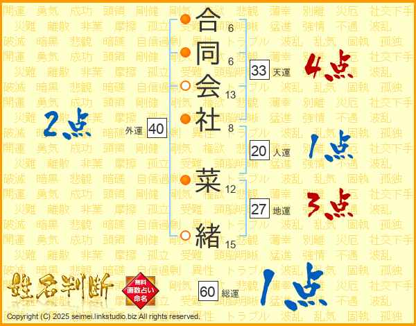 合同会社菜緒さんの天運は33画の4点!