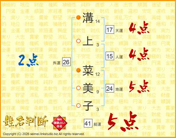 溝上菜美子さんの総運は41画の5点!