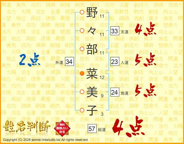 野々部菜美子さんの天運は33画の4点!