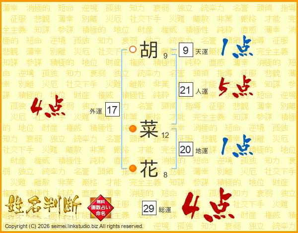 胡菜花さんの総運は29画の4点!