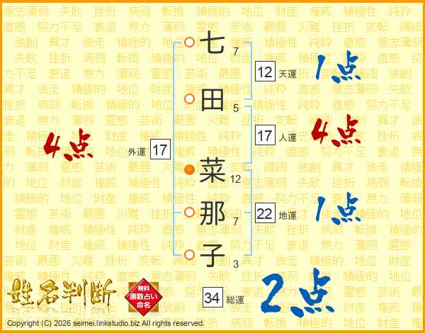七田菜那子さんの外運は17画の4点!