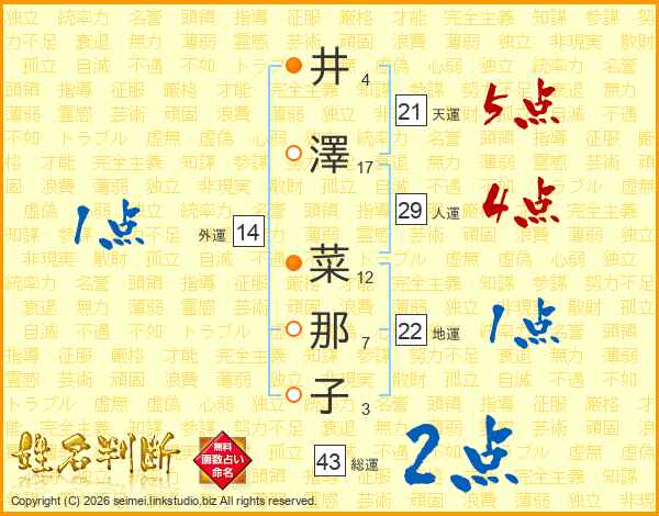 井澤菜那子さんの天運は21画の5点!
