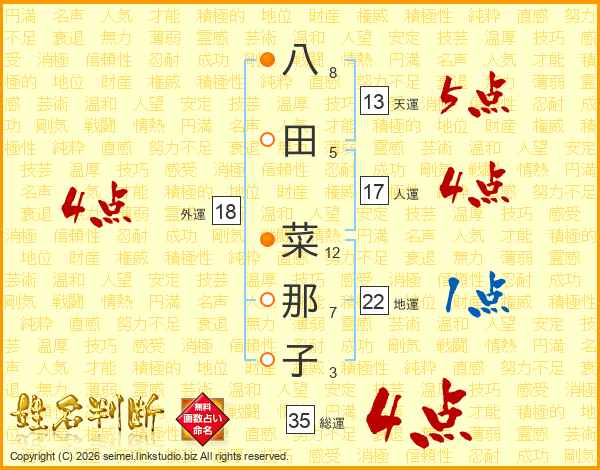 八田菜那子さんの総運は35画の4点!