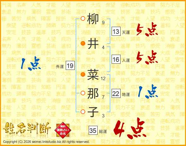 柳井菜那子さんの天運は13画の5点!