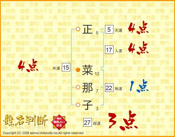 正菜那子さんの総運は27画の3点!