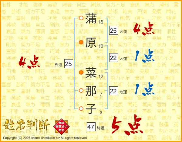蒲原菜那子さんの総運は47画の5点!