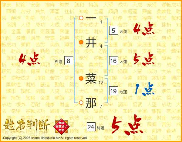 一井菜那さんの総運は24画の5点!