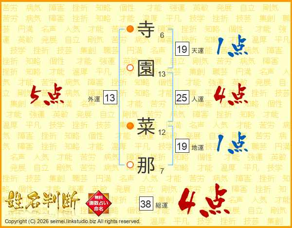 寺園菜那さんの総運は38画の4点!