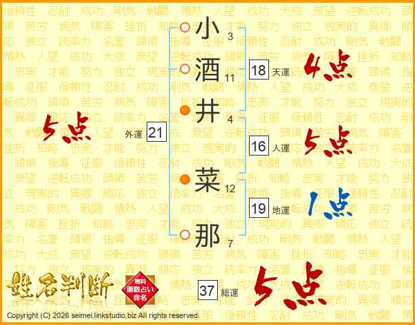 小(3画)酒(11画)井(4画) 菜(12画)那(7画)