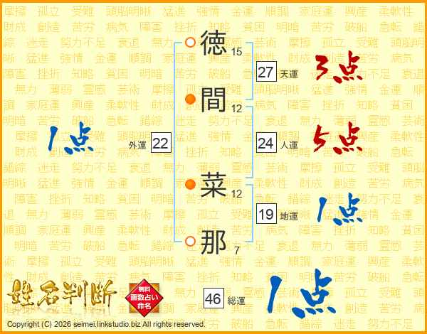 徳間菜那さんの総運は46画の1点!