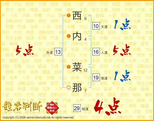 西内菜那さんの外運は13画の5点!