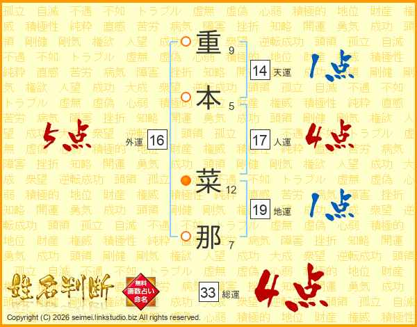 重本菜那さんの総運は33画の4点!