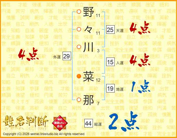 野々川菜那さんの総運は44画の2点!