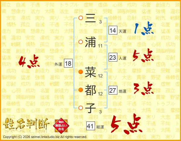 三(3画)浦(11画) 菜(12画)都(12画)子(3画)